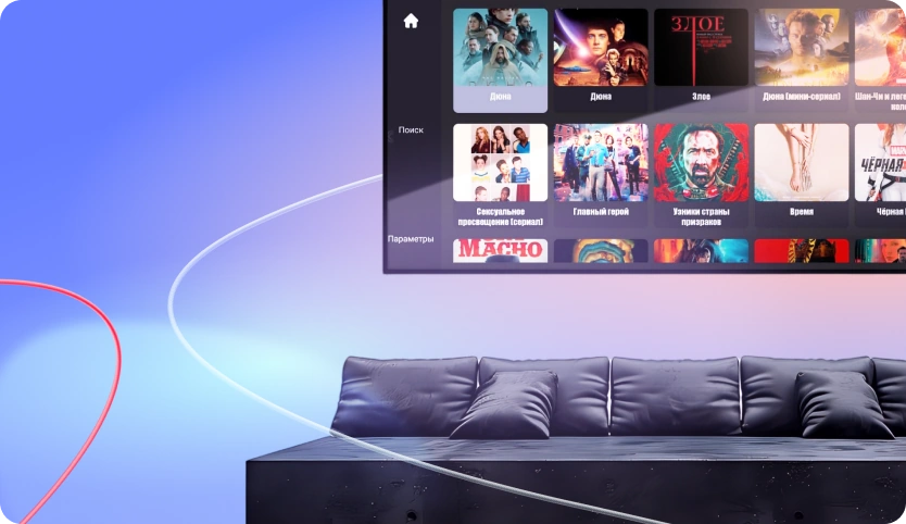 230 каналов + ТВ каналов, тысячи сериалов и фильмов без доплаты, безлимитный домашний интернет до 1 Гбит/с, подписка на онлайн кинотеатр KION